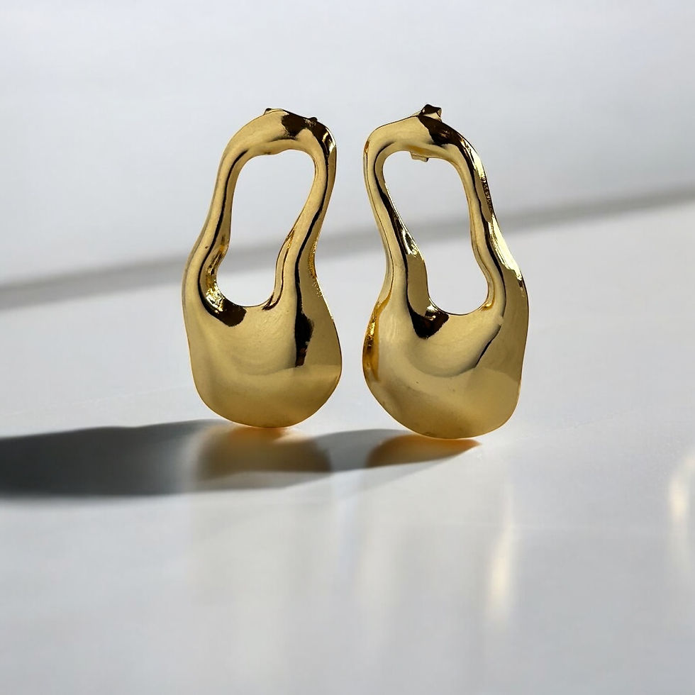 Brinco Orgânico Oval Martelado Vazado 38mm