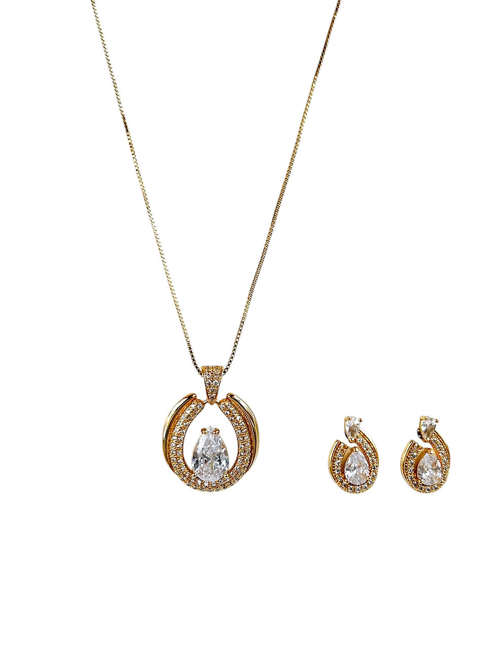 Conjunto Gotas Cristal com Zircônias |Colar 45cm