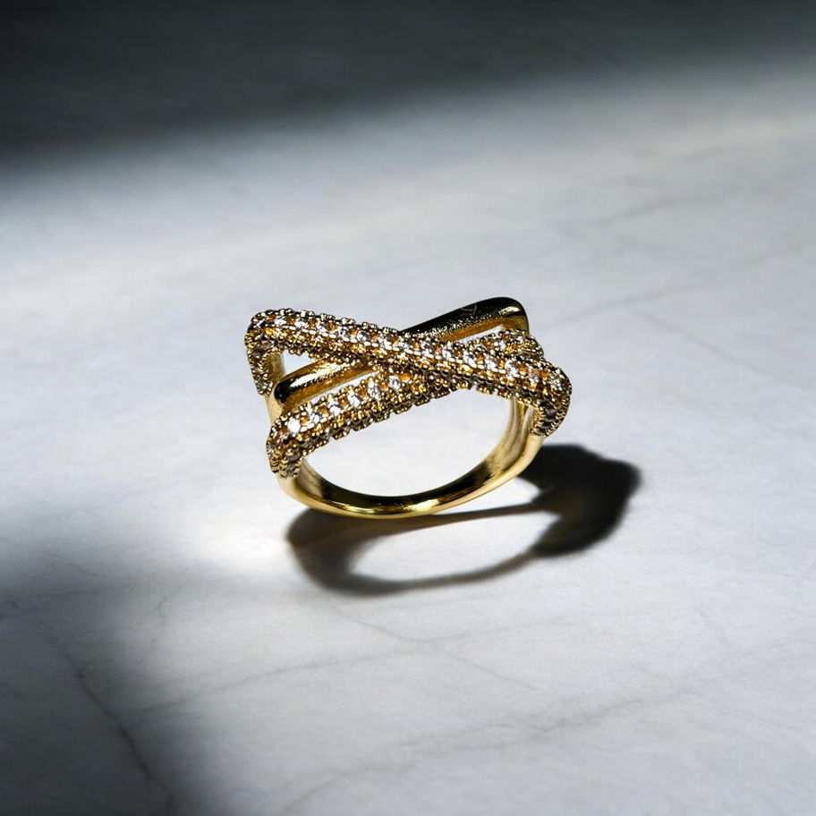 Anel Ângulo | Estrutura Quadrada com Zircônias em “X” Banhado a Ouro 18k