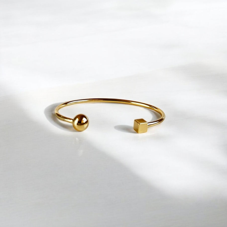 Com um design geométrico e moderno, o Bracelete com pontas assimétricas — uma quadrada e outra arredondada — é ideal para quem busca uma peça minimalista com personalidade. Um toque de originalidade que transforma qualquer look com sofisticação.